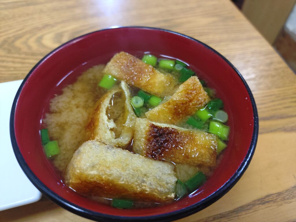 山盛りご飯が余りそうだったので、この味噌汁のおかげで、完食できました。
