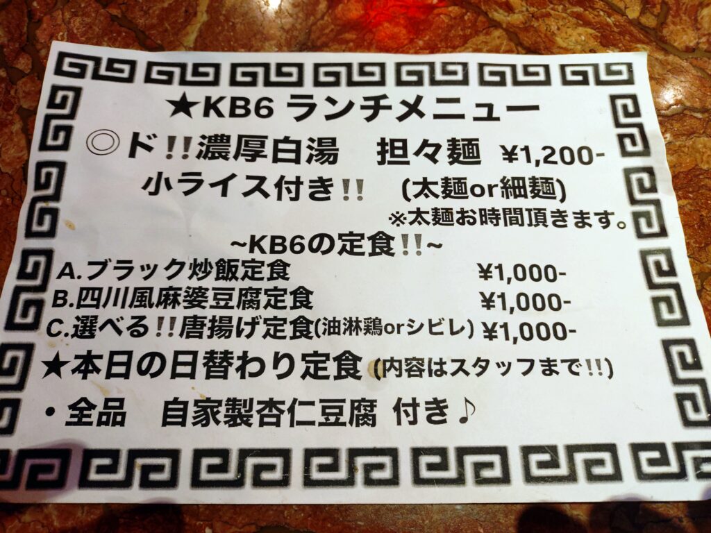 今回訪れたのは以前から気になってたお店「中華パーラーKB6」。