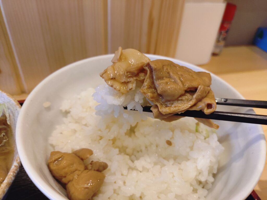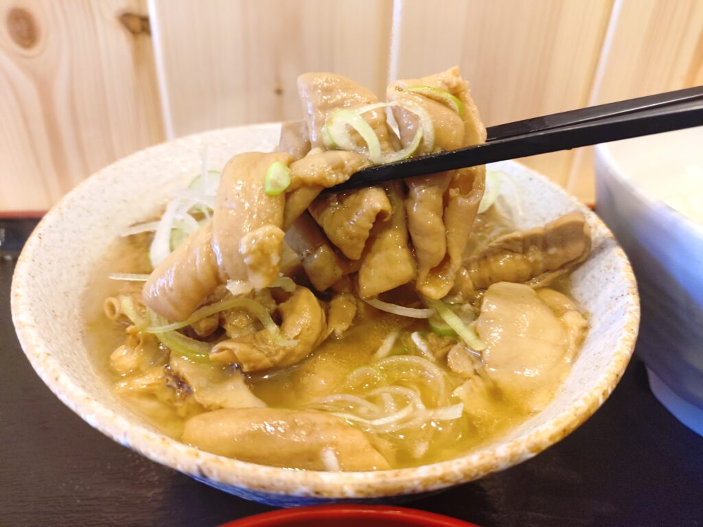 そして写真では分かりづらいですが、どんぶりの中に、大トロもつがたっぷり入っており、かなりの量があります。