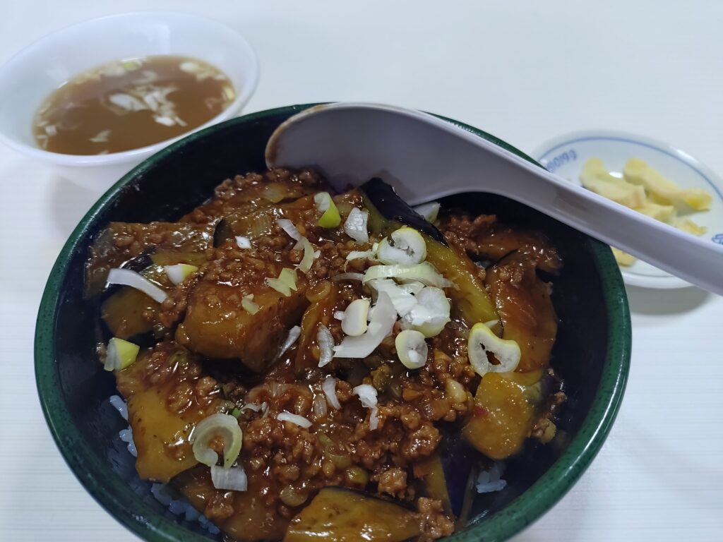 正直、スープとお新香はコメント控えますが、麻婆ナス丼は間違いない味でした。