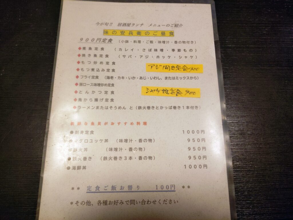 ■千葉市中央区・鶴沢町にある「居酒屋 安兵衛」のランチ