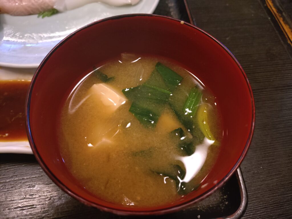 刺身も満足度も高いですが、 個人的に印象に残ったのは赤だしの味噌汁。