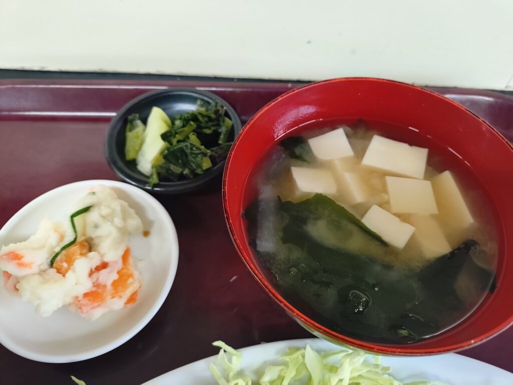 また、脇役の味噌汁、お新香、ポテトサラダもほっとする味。