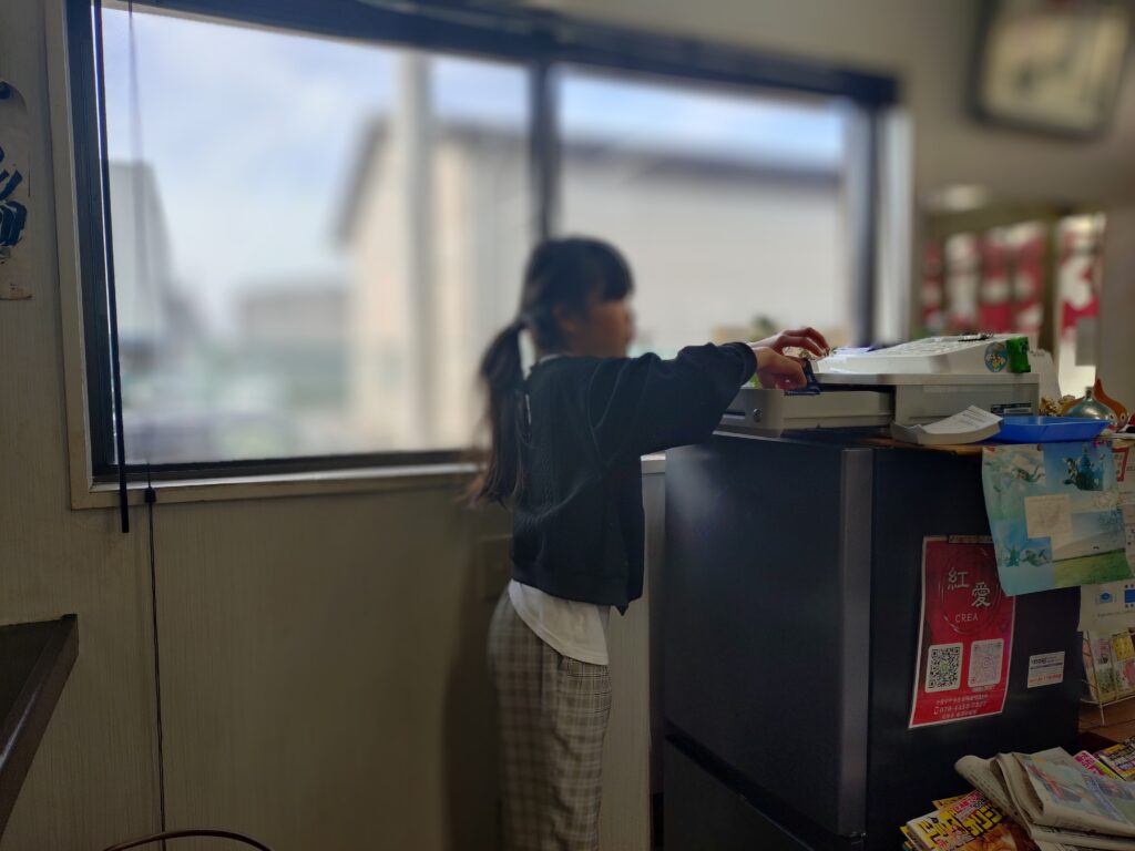 常連さんと自然に会話する姿に、このお店が地域に愛されていることがよく分かります。