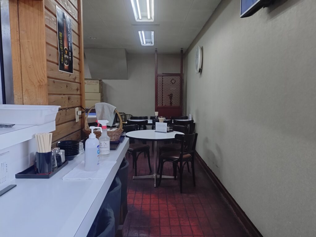 意を決して入店すると、すぐにカウンター席が5席あり、奥にはテーブル席が用意されています。