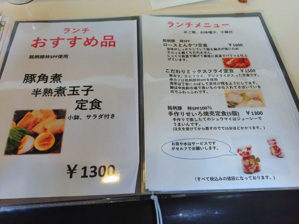 ランチメニューはとんかつを中心に、しゃぶしゃぶや焼売などもあり、どれも気になるラインナップ。