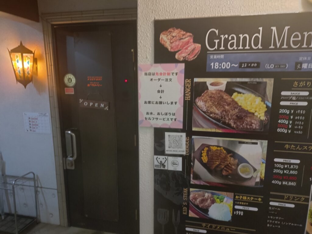 このステーキハウスは、サガリステーキか、牛タンステーキの2種類を扱っています。