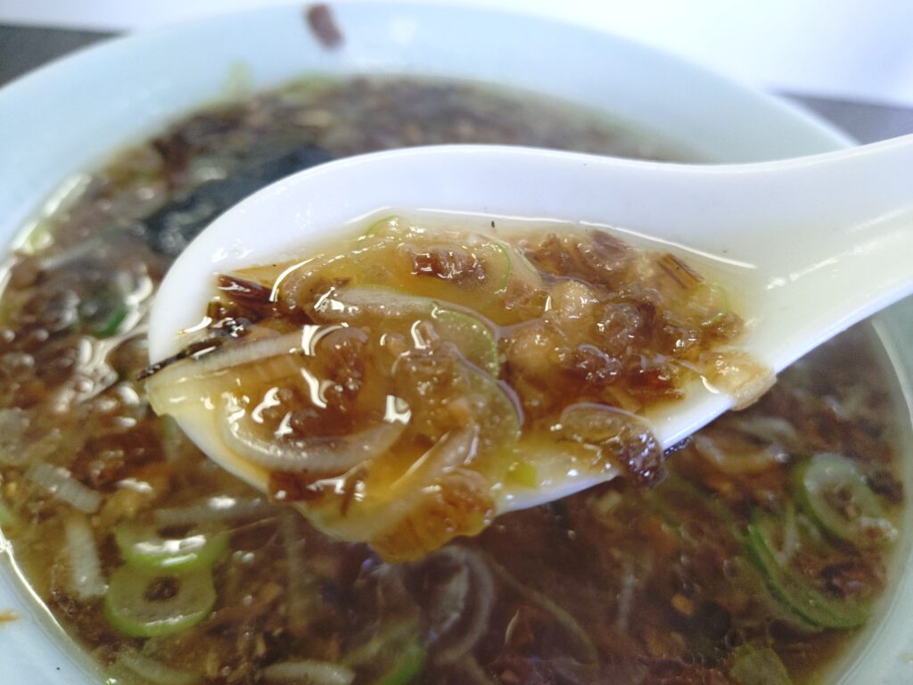 スープから香ばしい焦がしの風味が広がります。
